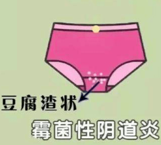 霉菌性阴道炎:最突出的症状是外阴和阴道剧烈瘙痒,常难以忍受。同时伴有阴道分泌物增多,呈典型的白色稠厚、豆腐渣样或凝乳状。还可出现外阴烧灼感、性交痛及排尿痛 。