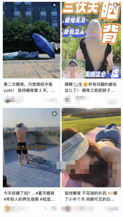 近日网上掀起一股“晒背风”引发关注,热传的“种草”攻略认为,这是不要钱的“天灸”,可以祛寒湿、减肥等