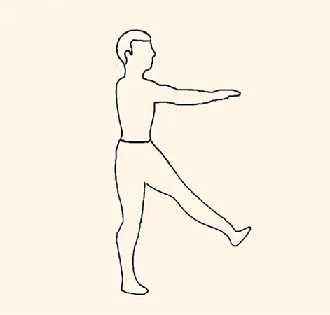 1.甩腿运动。站立,双腿并拢,双手扶墙,用脚尖支撑身体,两脚交替上下甩动16次。