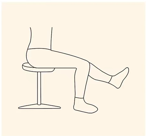 2.坐在椅子上,一条腿勾脚向上抬起,另一只脚掌踩地,保持15秒,换另一条腿。