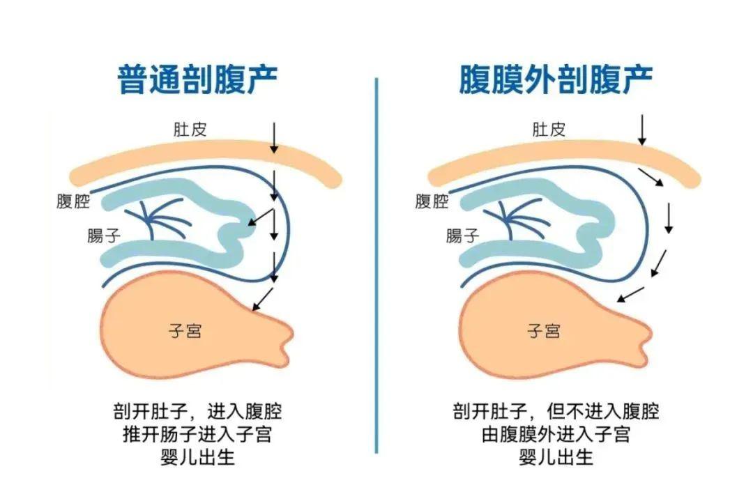普通剖宫产手术和腹膜外剖宫产手术,两者最主要的区别就在于——手术中是否打开腹膜。