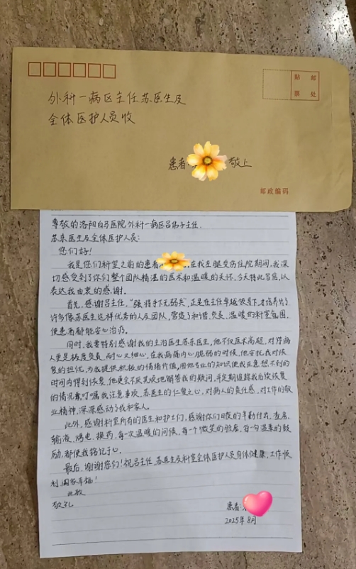 患者的赞誉,心中的责任丨洛阳白马医院普外科团队收到患者感谢信与锦旗!