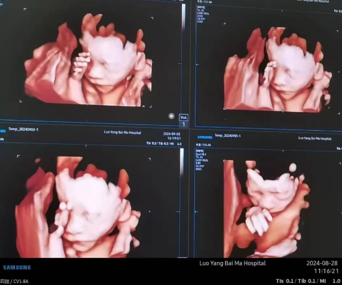 四维AI照,是洛阳白马医院为孕期宝妈提供的一项增值服务,利用人工智能算法,大致绘制宝宝出生后的模样。