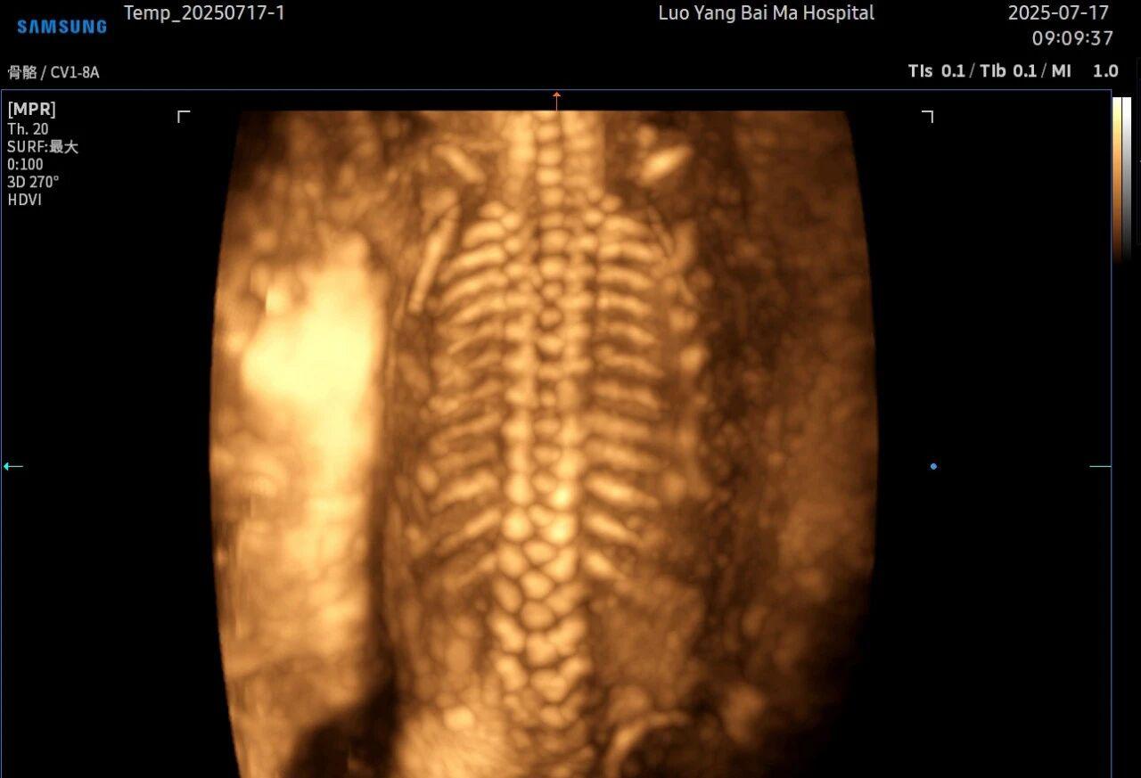 传统超声检查有时会因为胎儿体位、羊水量等因素的限制,导致某些部位观察不清。5D智能彩超技术能够实现对目标结构进行360°全方位、多切面的自由旋转观察。医生可以像“雕塑家”一样,从任意角度审视胎儿的解剖结构,尤其对于形态复杂的心脏、颅脑和脊柱等部位,这种能力可以极大弥补单一平面的局限性,帮助医生更全面地评估其发育状况。